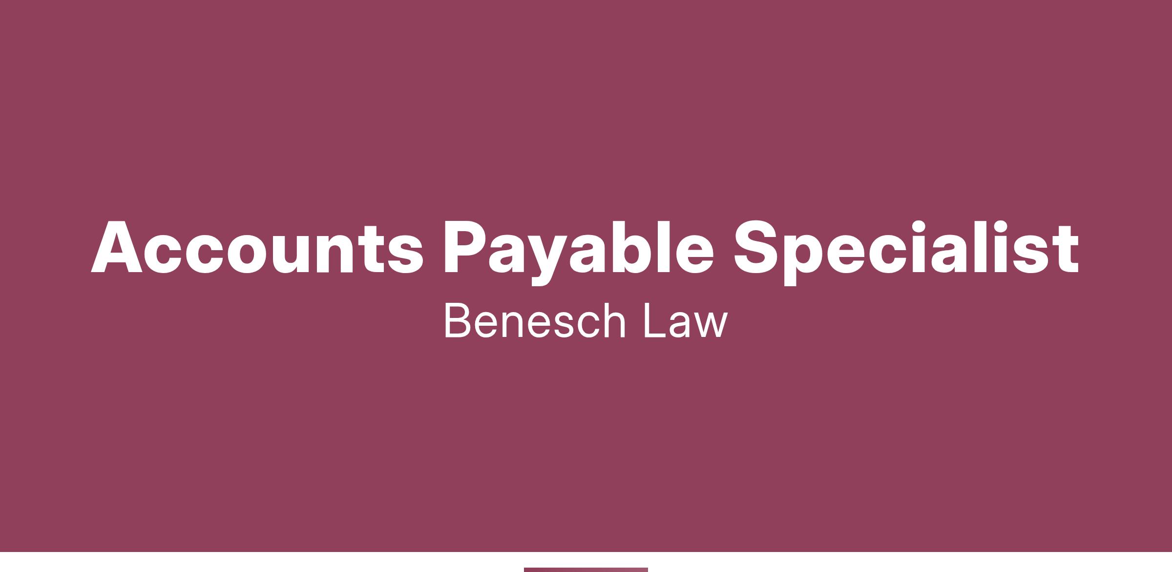 Benesch is proud to announce the opening for an Accounts Payable Specialist in our Cleveland office. This position is hybrid and has work from home flexibility.