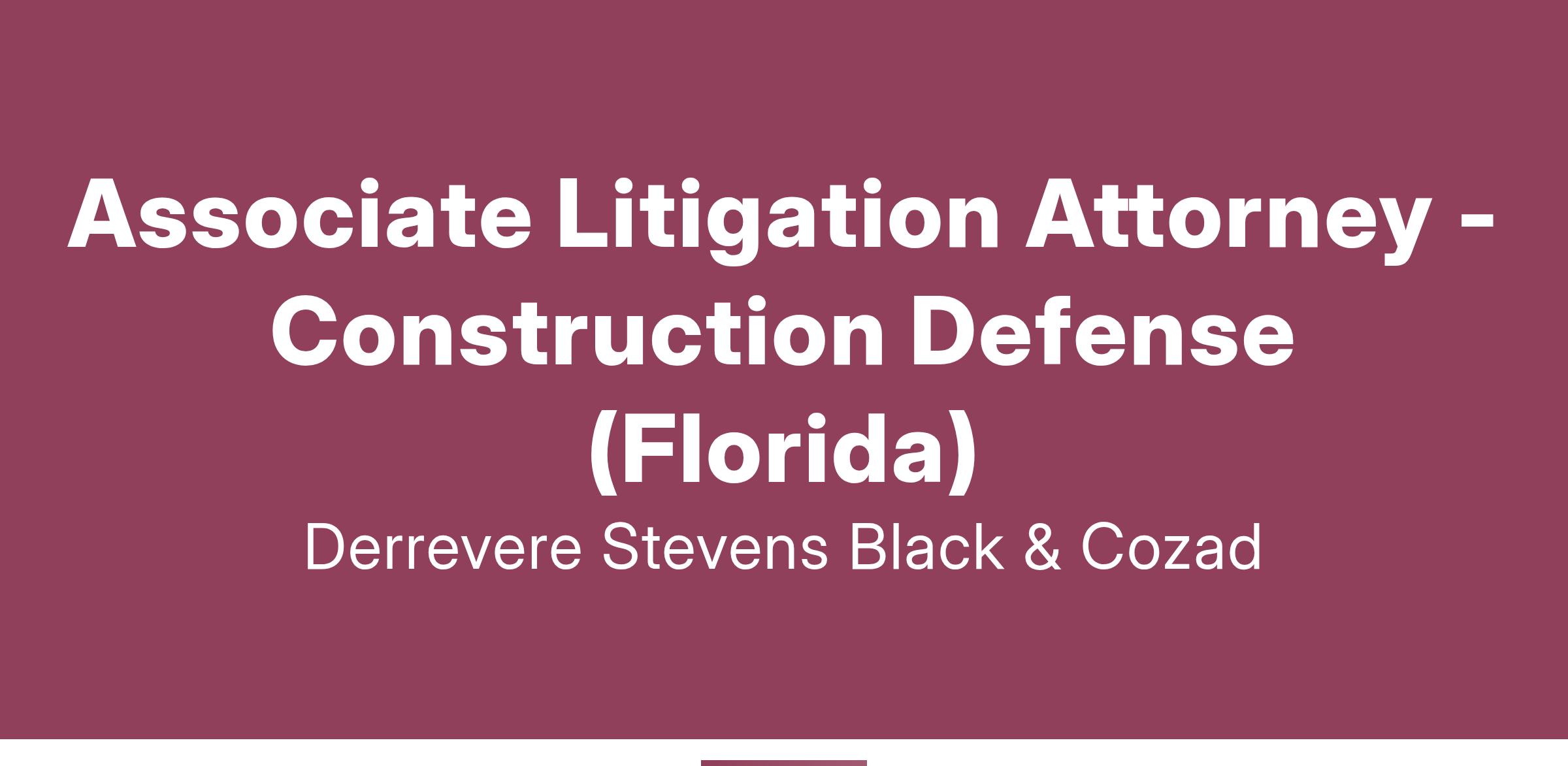 Associate Litigation Attorney - Construction Defense (Florida)