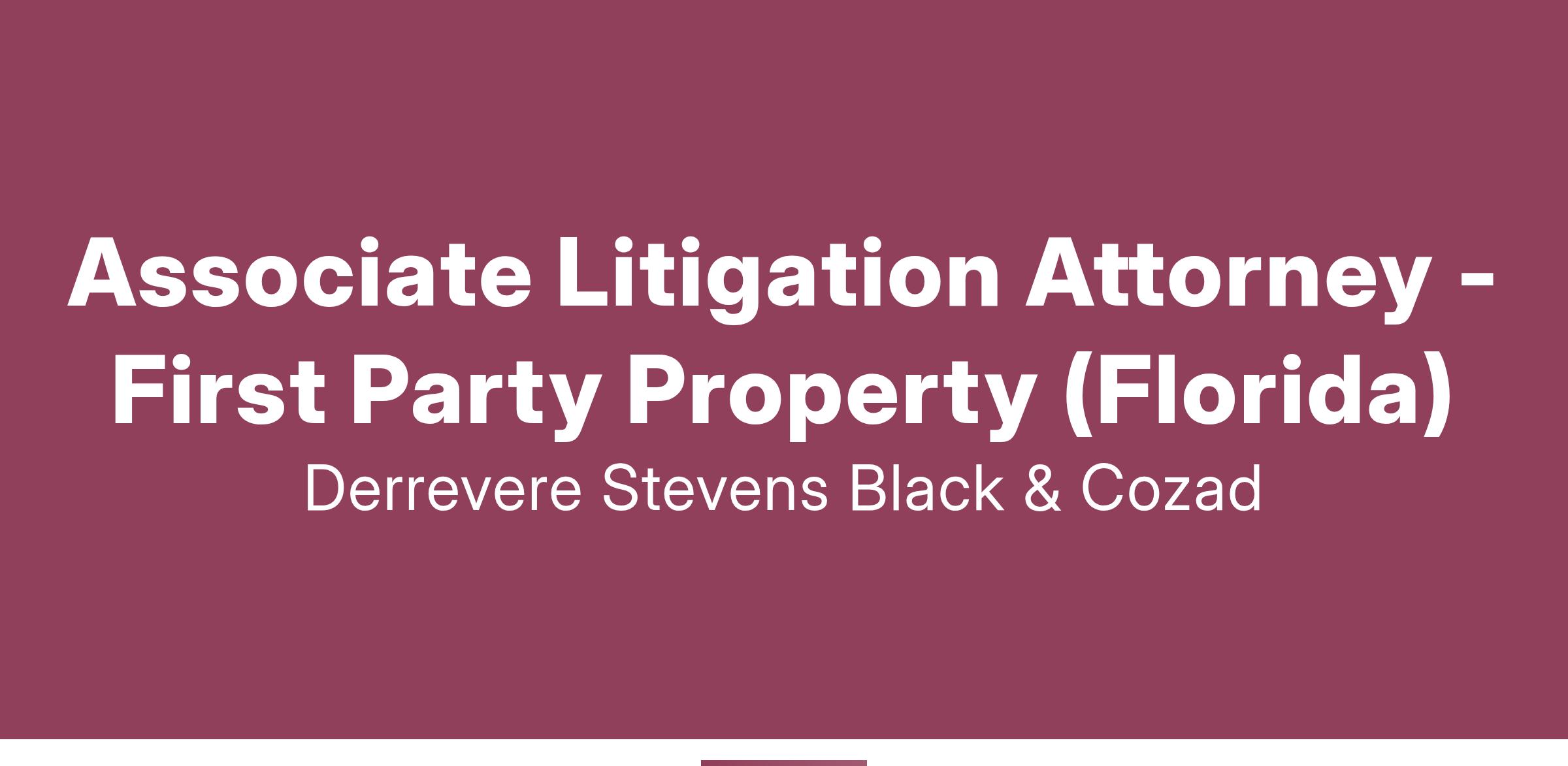 Derrevere Stevens Black & Cozad, a prestigious law firm with offices in Florida, is currently seeking a talented attorney to join our First Party Property Practice Group. This position offers the flexibility of remote work and promises a vibrant and enjoyable work environment.