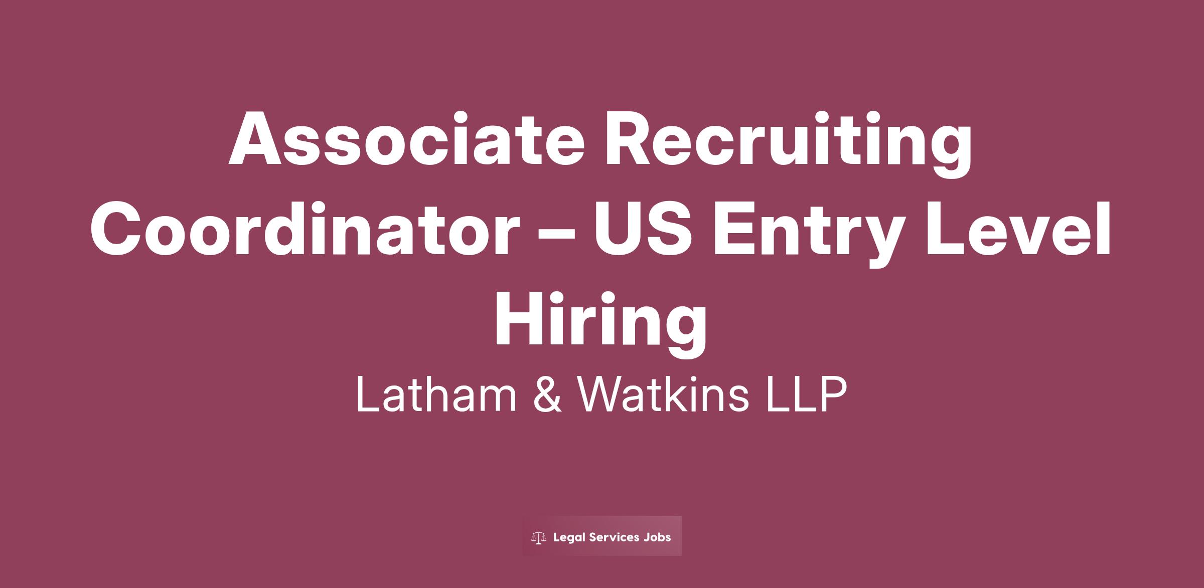 The Associate Recruiting Coordinator – US Entry Level Hiring is an integral part of Latham’s Human Capital & Talent / Associate Recruiting team and will be responsible for the recruitment and hiring of top talent for all associate-level positions at Latham & Watkins, while developing and maintaining relationships with internal local associate recruiting teams, target law schools, vendors, and other recruitment professionals. This role will be located in either our Washington, D.C. or New York office. Please note that this role may be eligible for a flexible working schedule that allows for a hybrid and in-office presence.
