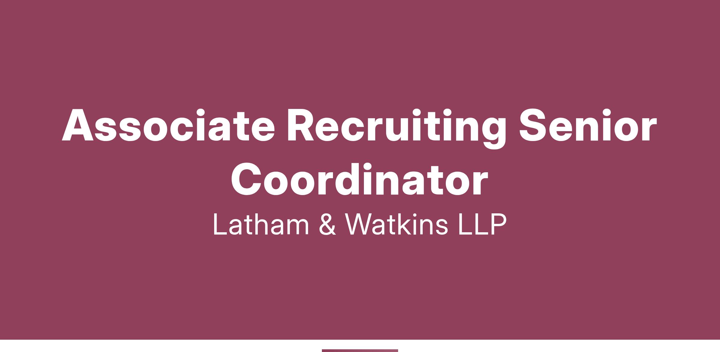 The Associate Recruiting Senior Coordinator – Lateral Associates is an integral part of Latham’s Human Capital & Talent team and will be responsible for the recruitment and hiring of top talent for all associate-level positions at Latham & Watkins, while collaborating with the Associate Recruiting Manager to develop and implement strategies for lateral associate recruitment. This role will be located in either our New York, Boston, San Diego, or Washington, D.C. office. Please note that this role may be eligible for a flexible working schedule that allows for a hybrid and in-office presence.
