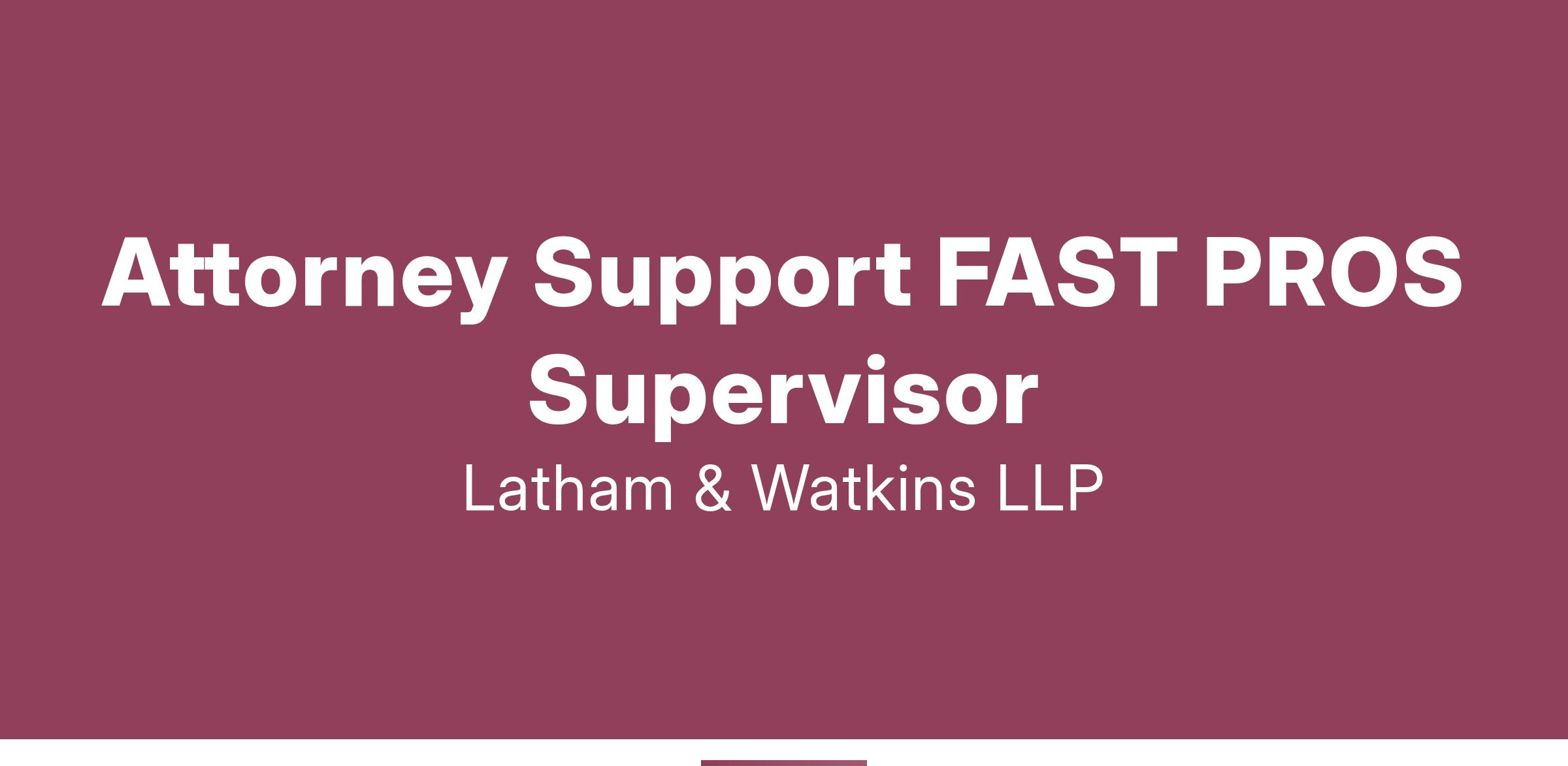 The Attorney Support FAST PROS Supervisor is an integral part of Latham’s Attorney Support team. This role will be responsible for leading, coaching, and supporting the delivery of the Attorney Support team, acting as a pro-active deputy to the Attorney Support Manager, while supervising and developing Attorney Support team members within the Attorney Support function. This role will be located in our Century City office. Please note that this role may be eligible for a flexible working schedule that allows for a hybrid and in-office presence.