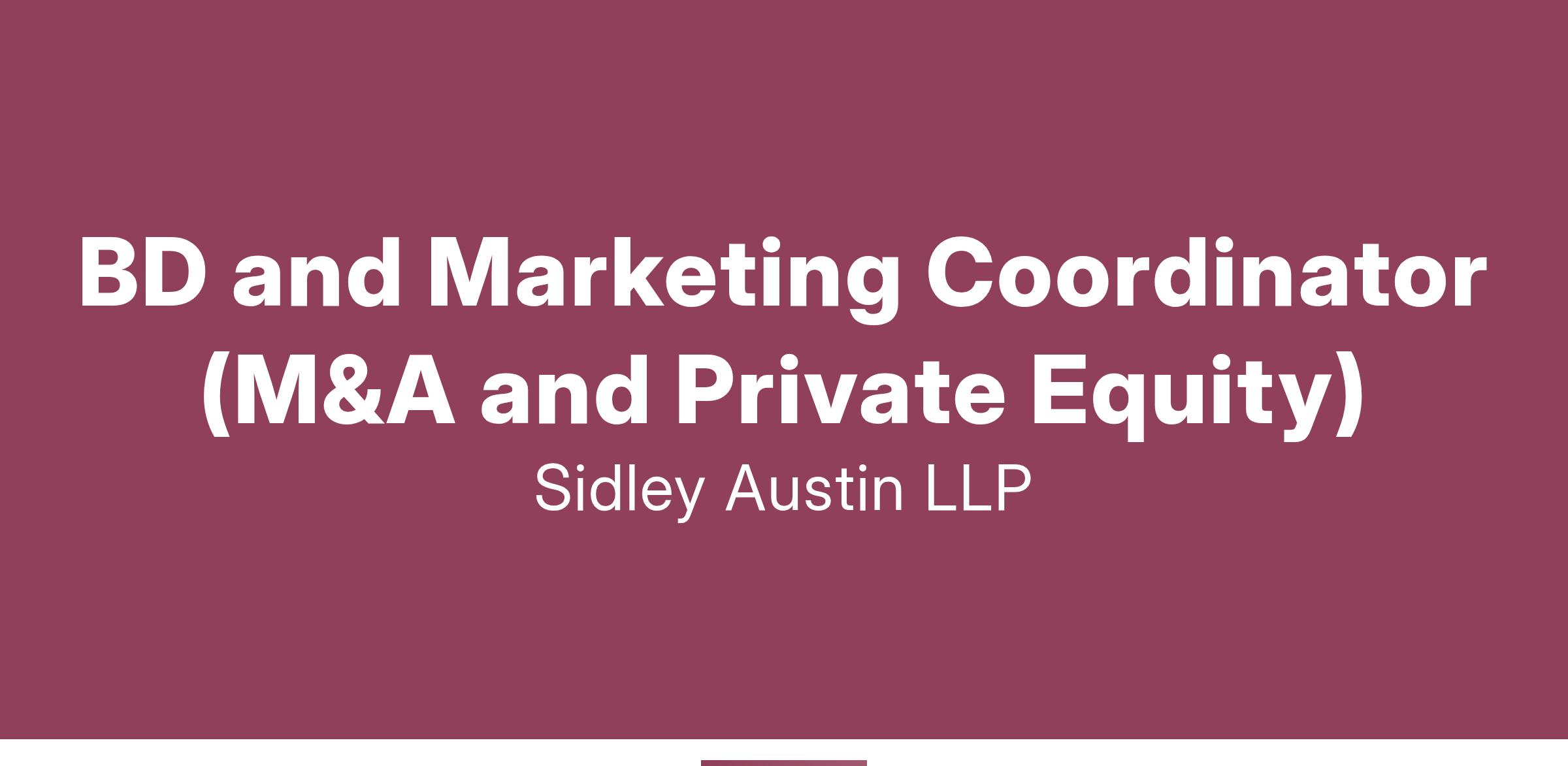The Business Development and Marketing Coordinator works closely with the Senior Business Development and Marketing Manager to support several of Sidley’s leading transactional practices, including M&A and Private Equity. The Coordinator is a central part of the team and is involved in a variety of projects including: entering and maintaining data in the Firm's experience management system; assisting in the creation and maintenance of business development and marketing collateral for the group, including pitches and web materials; coordinating drafts of directory submissions and client references; and coordinating activities to improve the profile of the practices involving outside organizations, such as sponsorships and other major events. The Coordinator takes an active role in learning about their assigned legal groups and developing the groups' and the firm's internal knowledge about its clients and business. The Coordinator also works closely with the other Business Development and Marketing Managers and Specialists in different offices to coordinate marketing efforts. It is essential that the Coordinator is a self-starter, works across offices, and works well in a team environment.