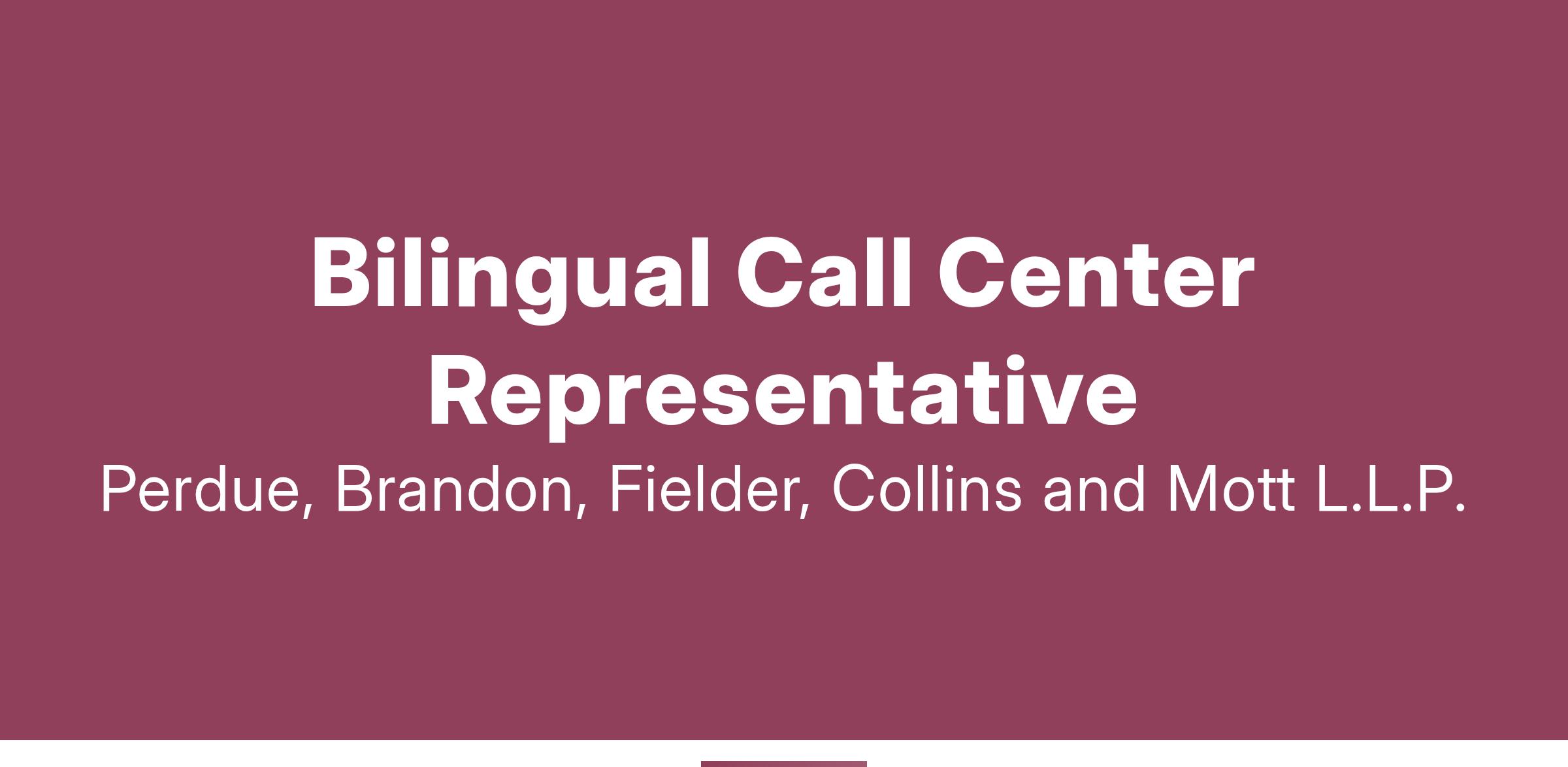 Perdue Brandon Fielder Collins and Mott LLP (PBFCM) has an immediate opening for a Bilingual Call Center Representative.