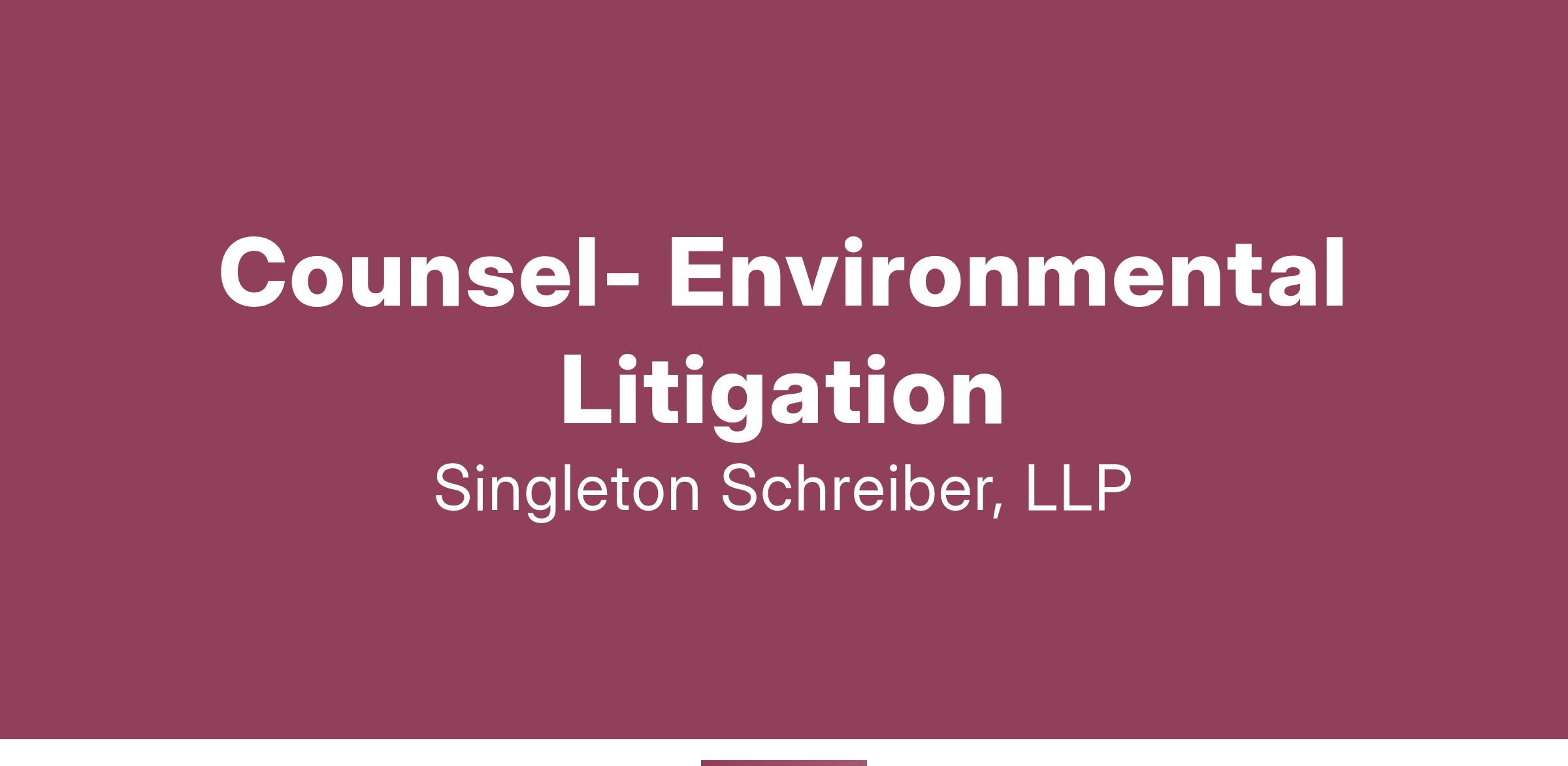 JOB DESCRIPTION: Singleton Schreiber, LLP is seeking an experienced and motivated Attorney who will play a pivotal role in advocating for our clients' rights and delivering outstanding legal services. In this position, the Cousel will focus on environmental law practice as well as regular litigation in state and federal courts.