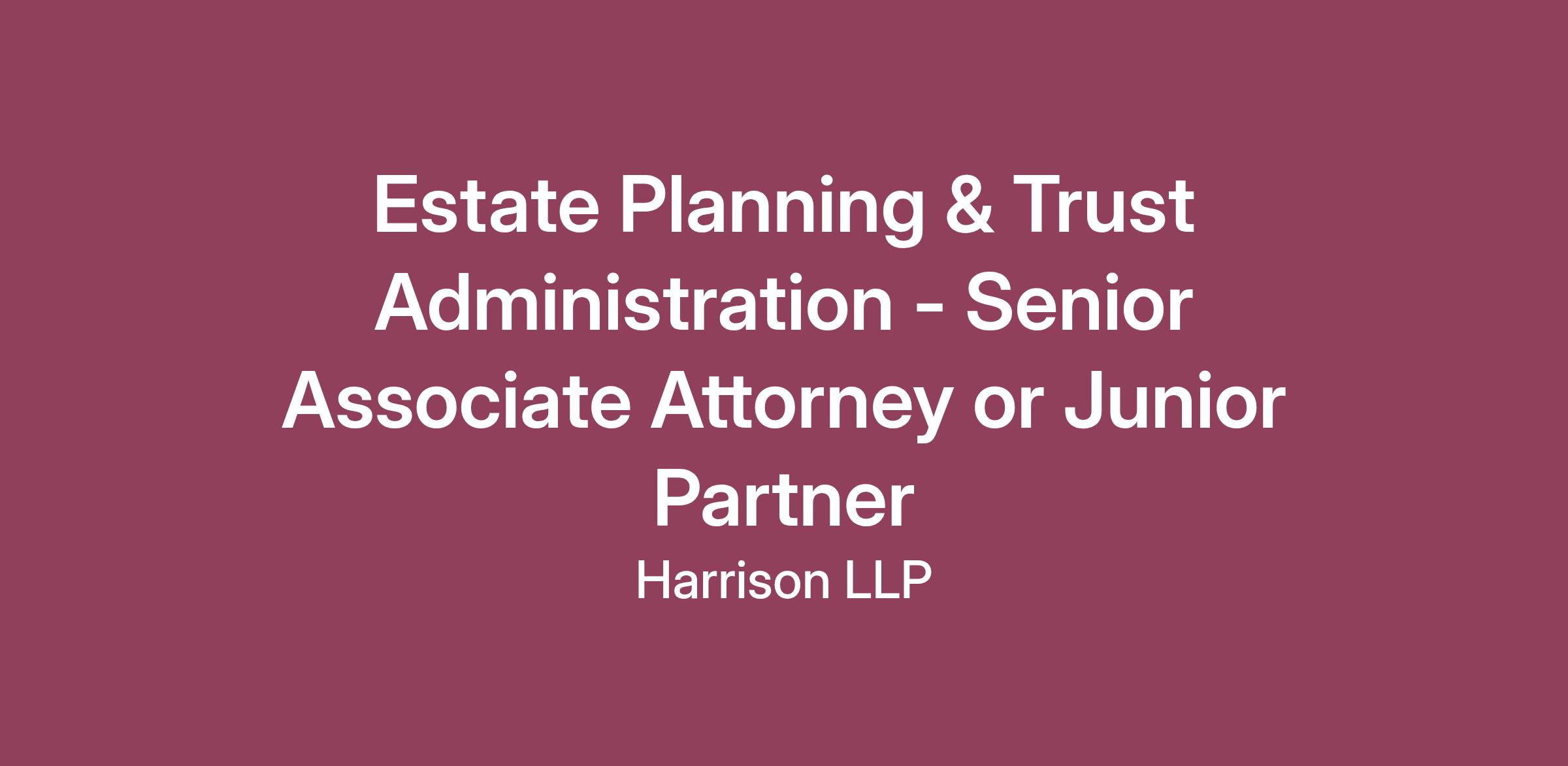 We are seeking a highly skilled and client-focused Senior Associate or Junior Partner with significant experience in estate and wealth planning, trust and estate administration, and business succession planning. The ideal candidate will bring strong technical knowledge, sound judgment, and a compassionate, client-first approach to planning.