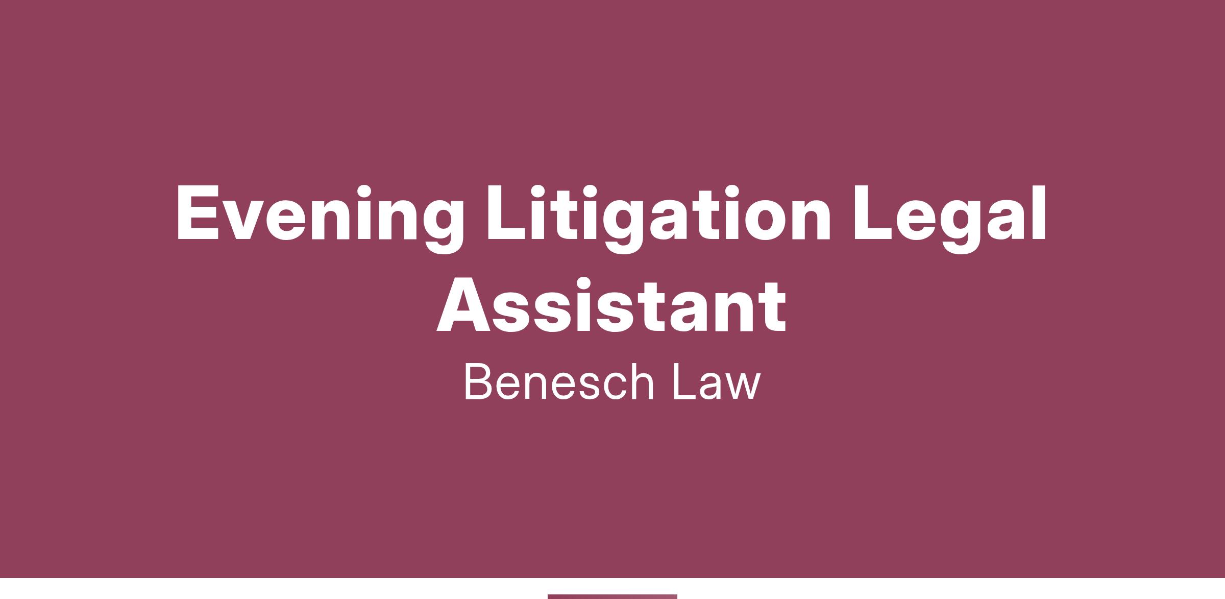 The Evening Litigation Legal Assistant plays a key role in providing additional support to different attorneys and their practice groups with everything from document production, trial/arbitration support to e-filing and projects. The office is looking for a contributor who wants to be an involved member of their team.