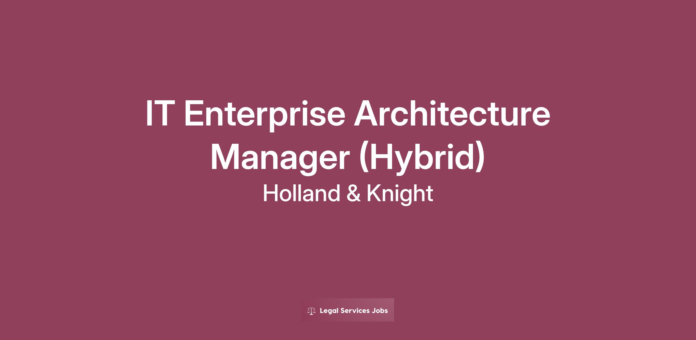 We are seeking an IT Enterprise Architect (EA) Manager to join our team. The IT Enterprise Architect Manager will be responsible for overseeing the Solutions Architecture team and proactively and holistically helping and guiding enterprise leaders, product owners, and project teams through transformation and optimization initiatives, supporting the formulation of business strategy, outcomes, and capabilities. The person fulfilling this role must have deep technical knowledge in networks, virtualization, cloud, application development, security, and automation tools. A successful EA Manager uses various approaches to construct current and future-state architecture models to support the Firm's growing needs. This person also facilitates business and IT alignment, connecting strategy to execution through a collaborative, supportive, and consultative manner, driving the organization's digital business strategies and balancing innovation and growth. This role proactively researches technology trends and identifies new or upgraded systems to help Holland & Knight improve its processes to operate more efficiently. Most importantly, the incumbent in this role must have exceptional communication, leadership, and collaboration skills to help deliver the vision set forth by Firm leadership in alignment with its goals and objectives. This position offers a hybrid schedule, providing flexibility to work from home or the office. Currently, this role requires weekly in-office attendance, as well as participation in occasional team meetings, training sessions, and firm-sponsored events.