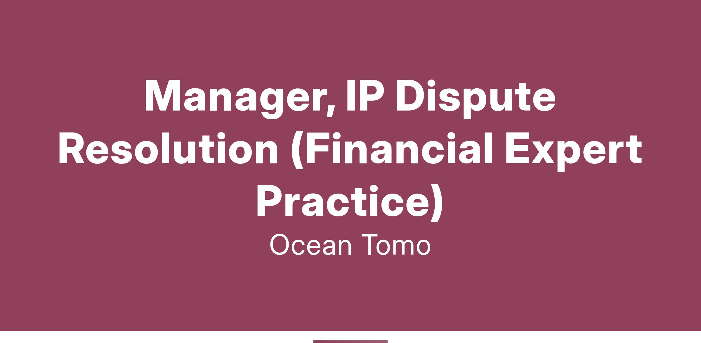 Manager, IP Dispute Resolution (Financial Expert Practice)