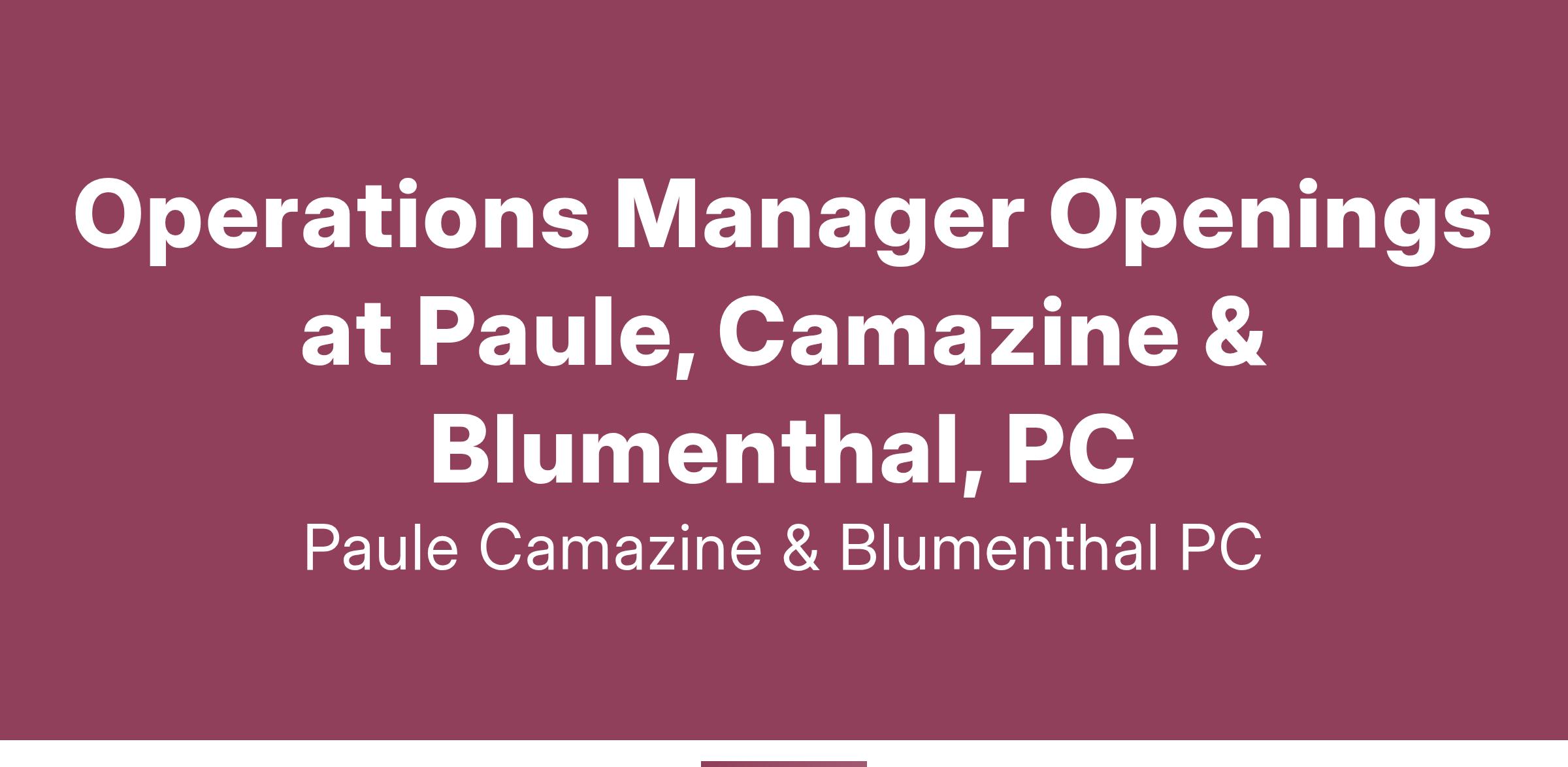Paule, Camazine & Blumenthal, P.C., is seeking a highly skilled Operations Manager to drive our internal processes and support our strategic goals. This is a unique opportunity to make a significant impact on the growth and efficiency of our organization by working closely with the President and Board of Directors.