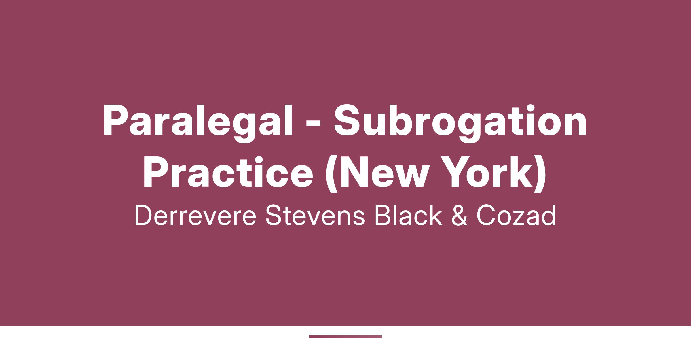Paralegal - Subrogation Practice (New York)