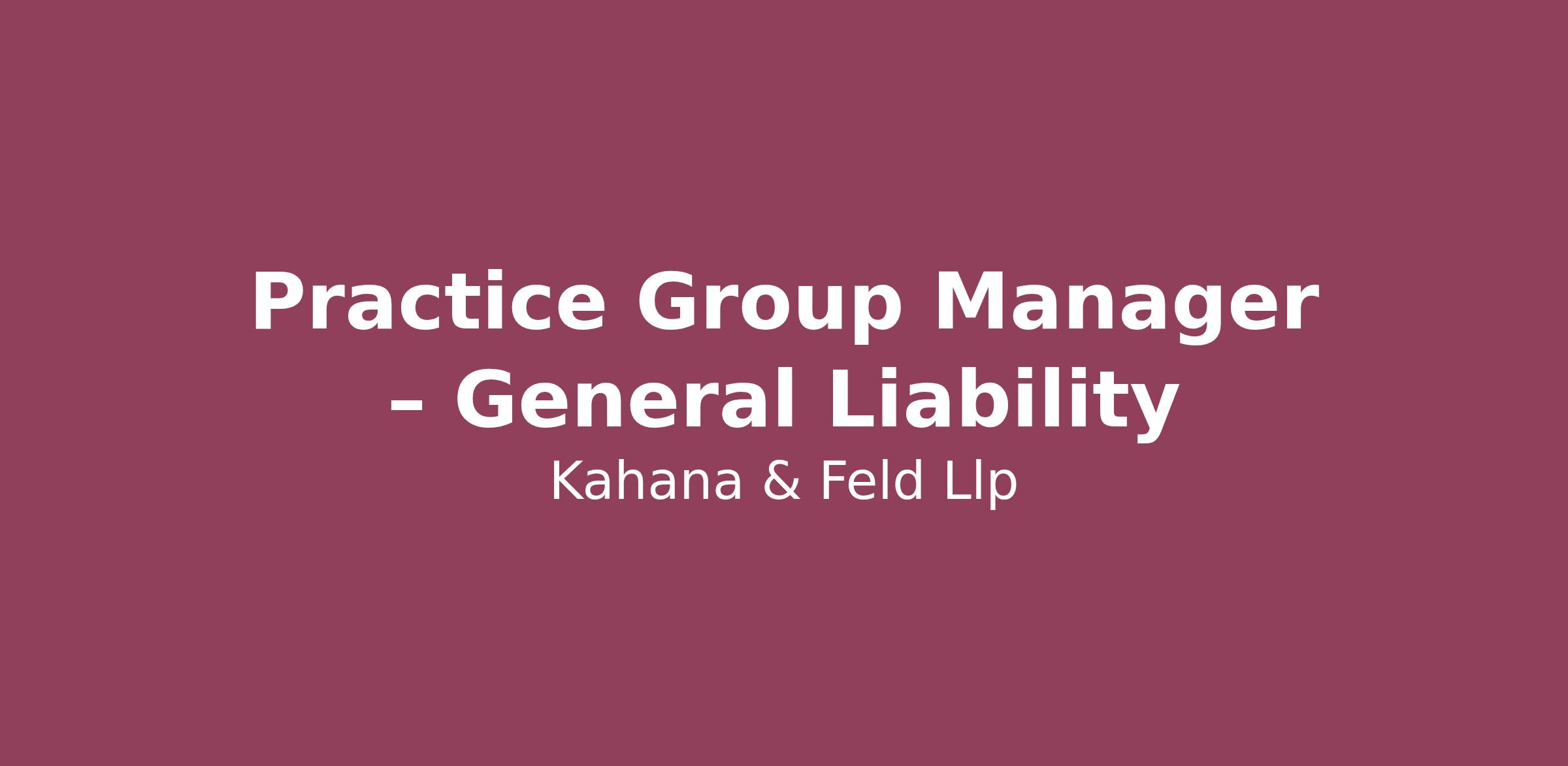 The Practice Group Manager - General Liability, based on experience, will support operations within a specific practice area of the firm in conjunction with firm and General Liability practice leaders.