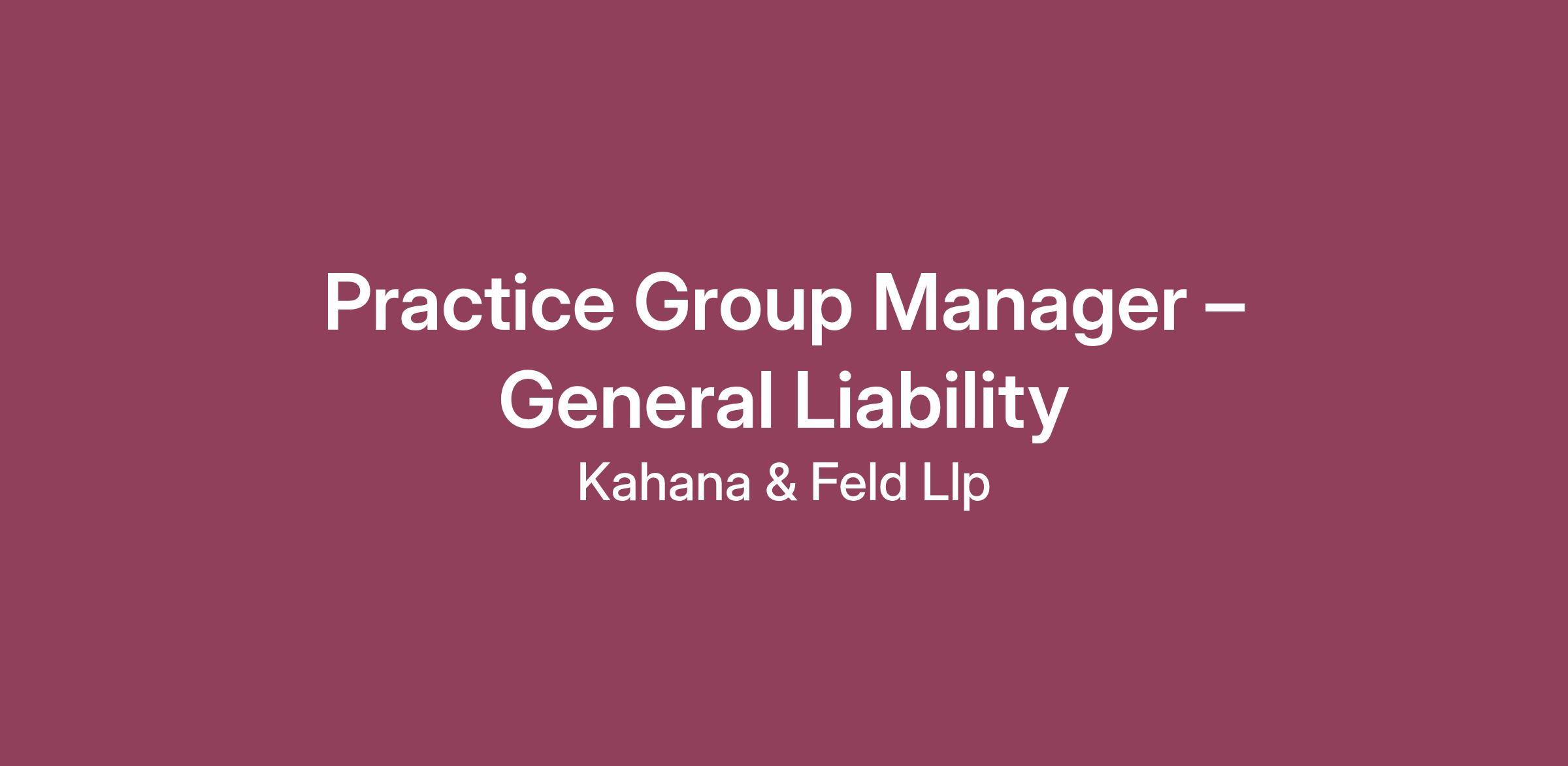 The Practice Group Manager - General Liability, based on experience, will support operations within a specific practice area of the firm in conjunction with firm and General Liability practice leaders.