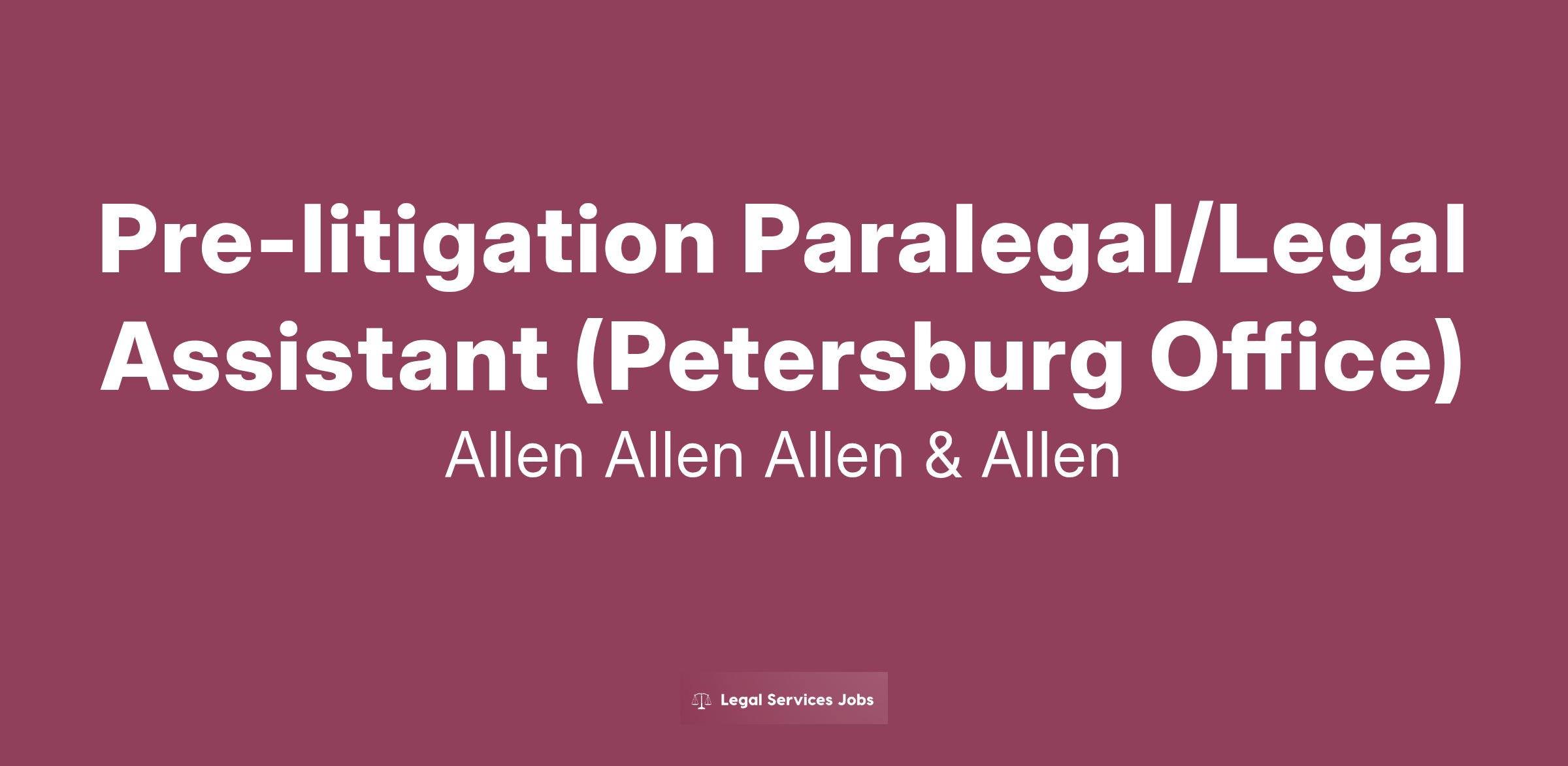 Pre-litigation Paralegal/Legal Assistant (Petersburg Office)
