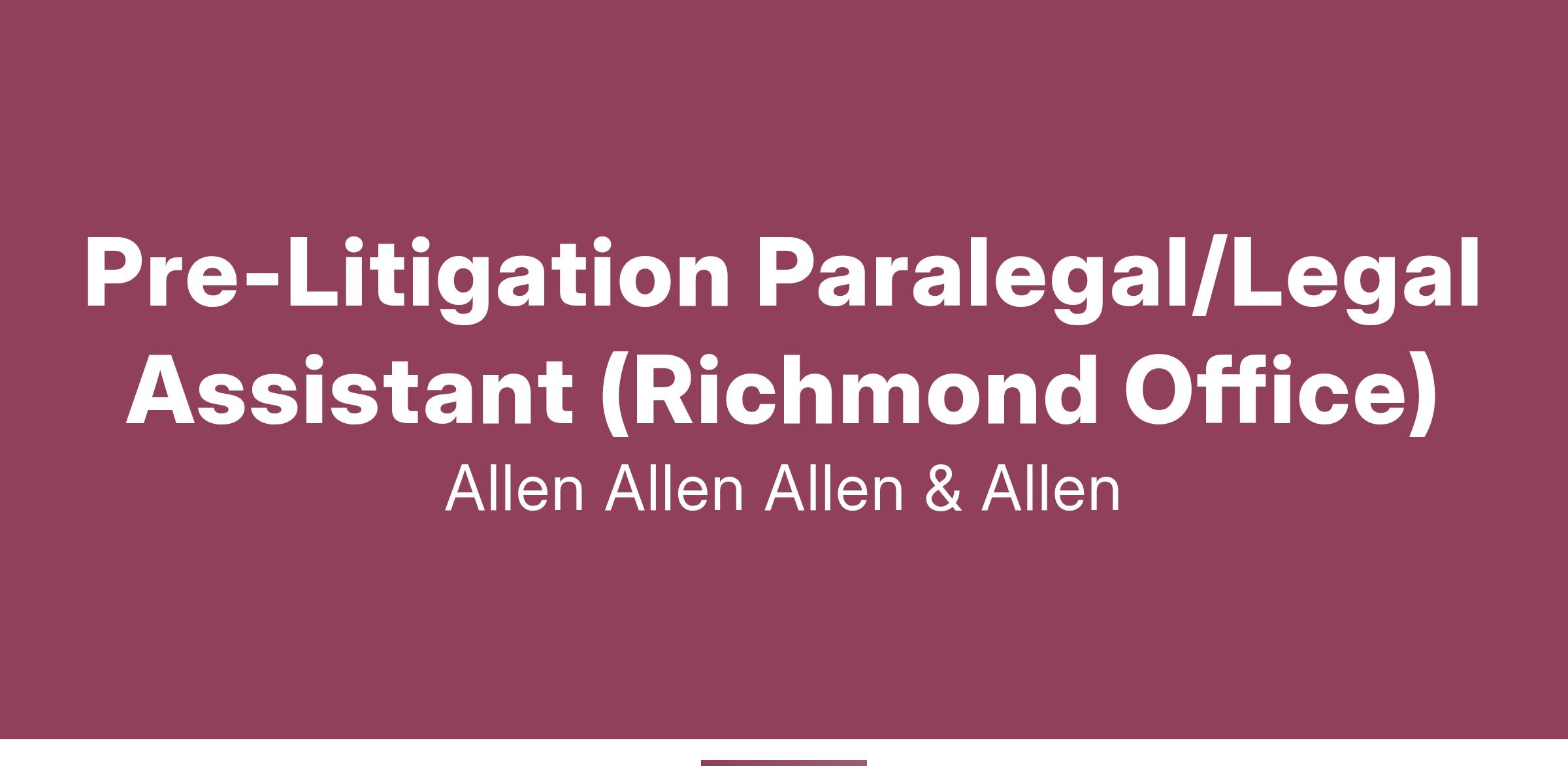 Pre-Litigation Paralegal/Legal Assistant (Richmond Office)
