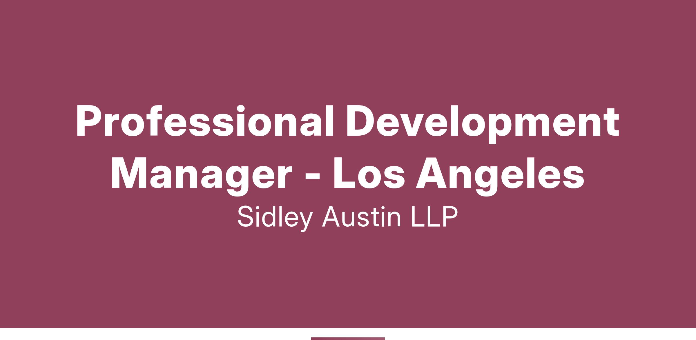 The Professional Development Manager will be based in Los Angeles, CA and will have primary responsibility for supporting the professional development of lawyers in Sidley's three southern California offices.