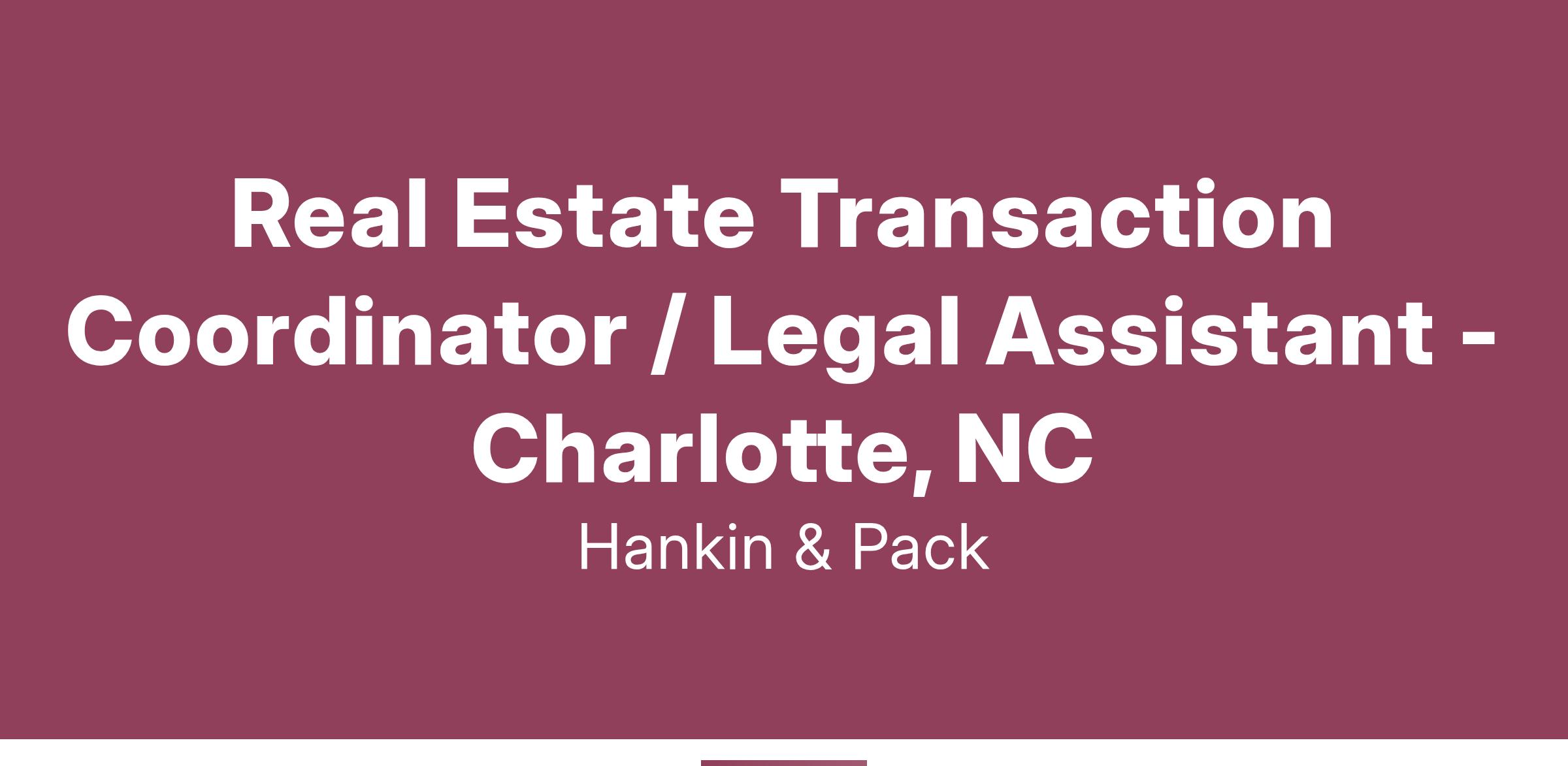We are currently searching for a Real Estate Transaction Coordinator / Legal Assitant in our Charlotte, NC office to join our growing team! You will assist in handling real estate activities and transactions on behalf of clients.