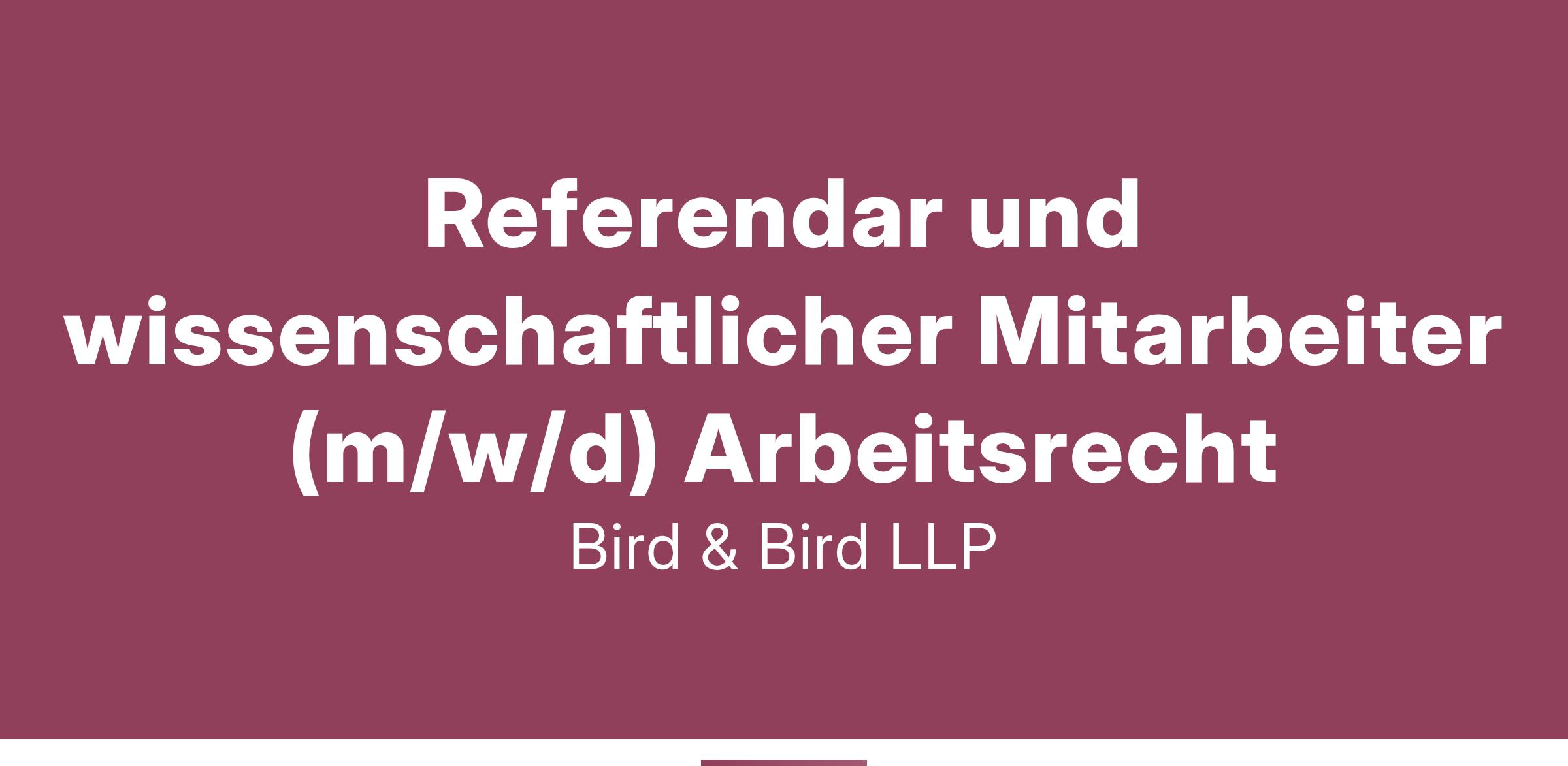 Zum nächstmöglichen Zeitpunkt suchen wir einen Referendar (m/w/d) oder wissenschaftlichen Mitarbeiter (m/w/d) für unser Arbeitsrecht-Team in Düsseldorf.