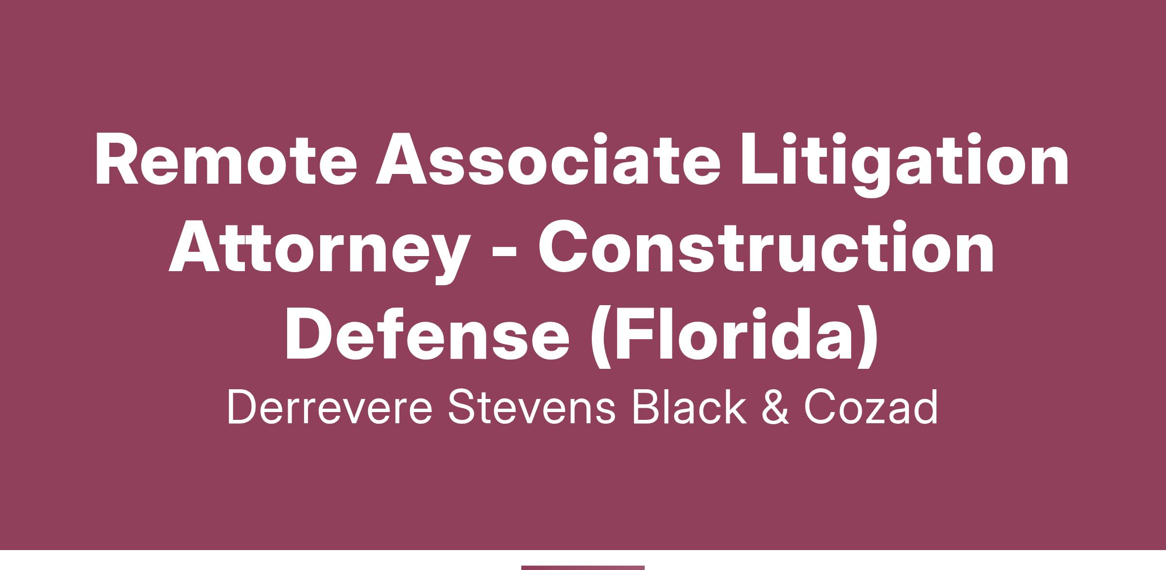 Remote Associate Litigation Attorney - Construction Defense (Florida)