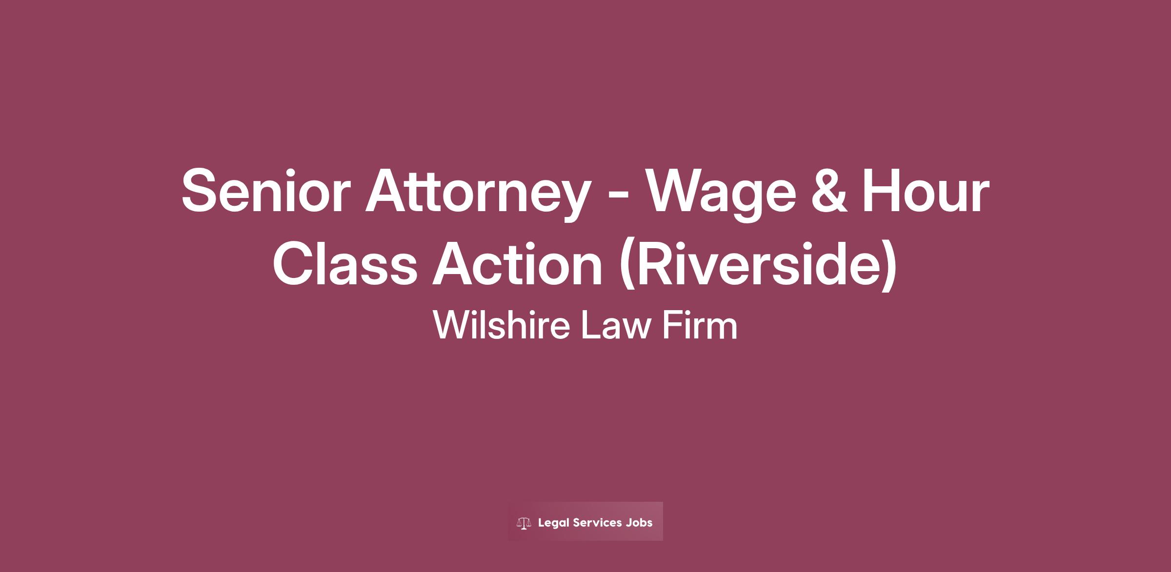 Senior Attorney - Wage & Hour Class Action