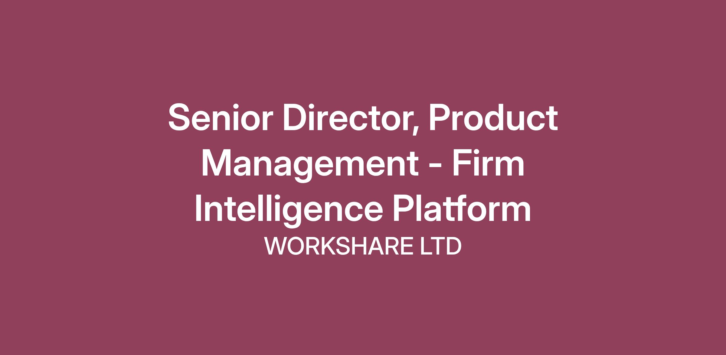 Senior Director, Product Management – Firm Intelligence Platform