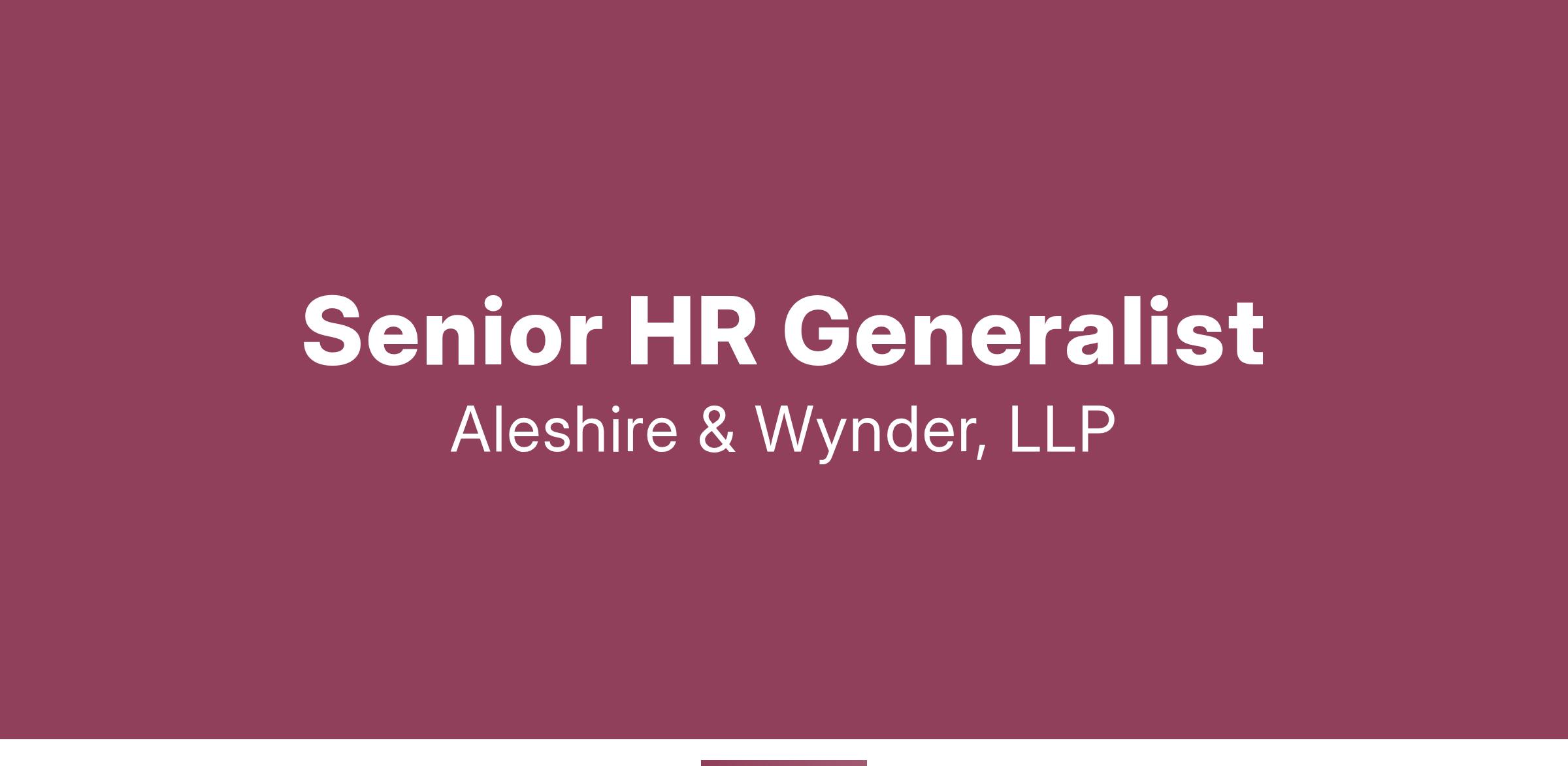Are you an organized and detail-oriented professional looking for an exciting opportunity to showcase your Human Resource skills? Look no further! Aleshire & Wynder, LLP is seeking a full-time Sr. Human Resources Generalist to join our Irvine, CA team.