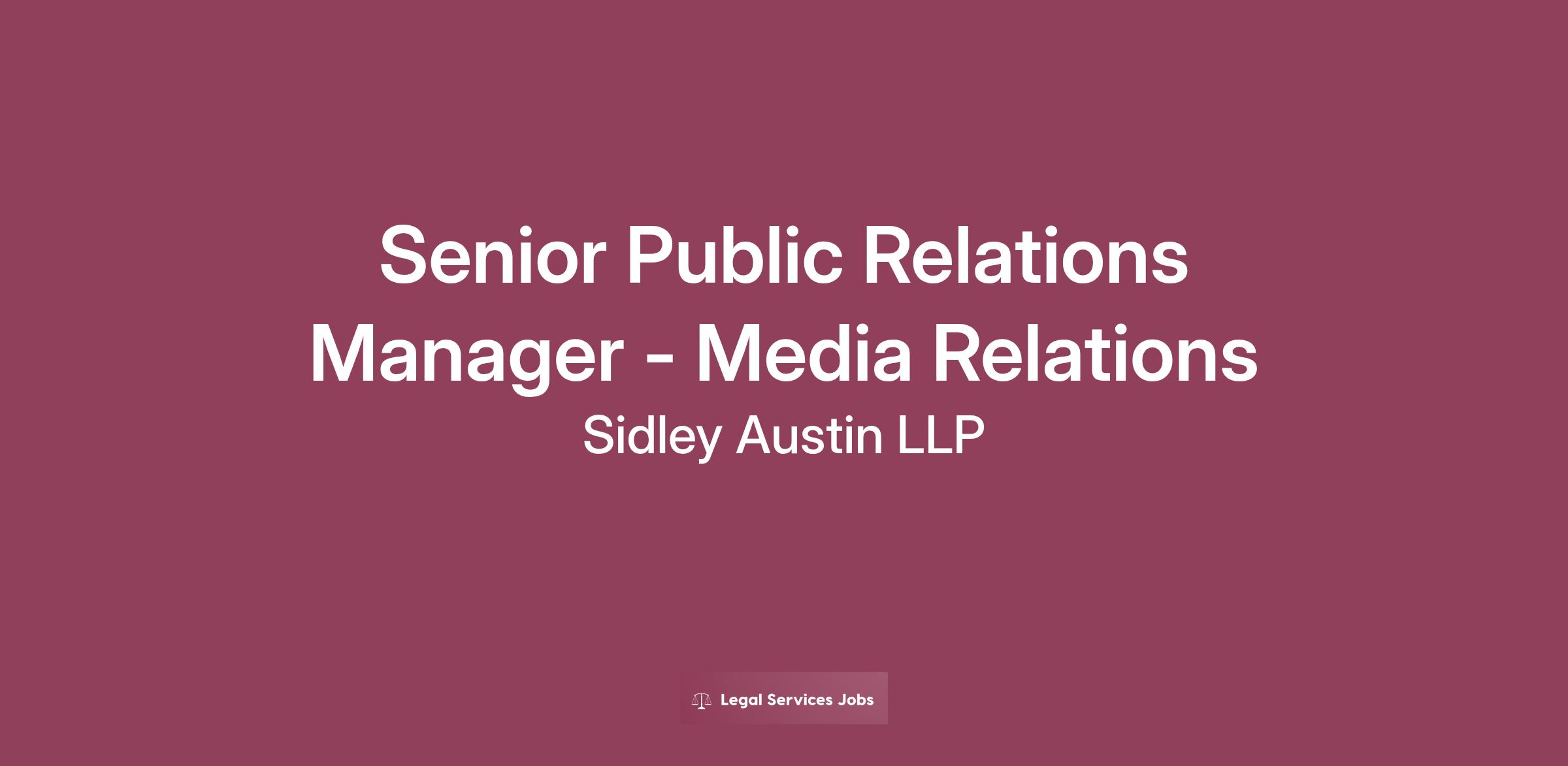 Reporting to the Director of Public Relations, the Senior Public Relations Manager will be responsible for the delivery, management and execution of high-impact public relations activities that support the firm’s global strategy. S/He will play a leading role in various activities including the supervision of Sidley PR agency partners in executing media relations actions, serving as project manager on multiple initiatives simultaneously, drafting communications materials for external and internal audiences and educating internal stakeholders on PR best practices. The Senior Public Relations Manager must be a self-starter, exceptional writer, critical thinker and team player with strong communication, organizational and management skills.