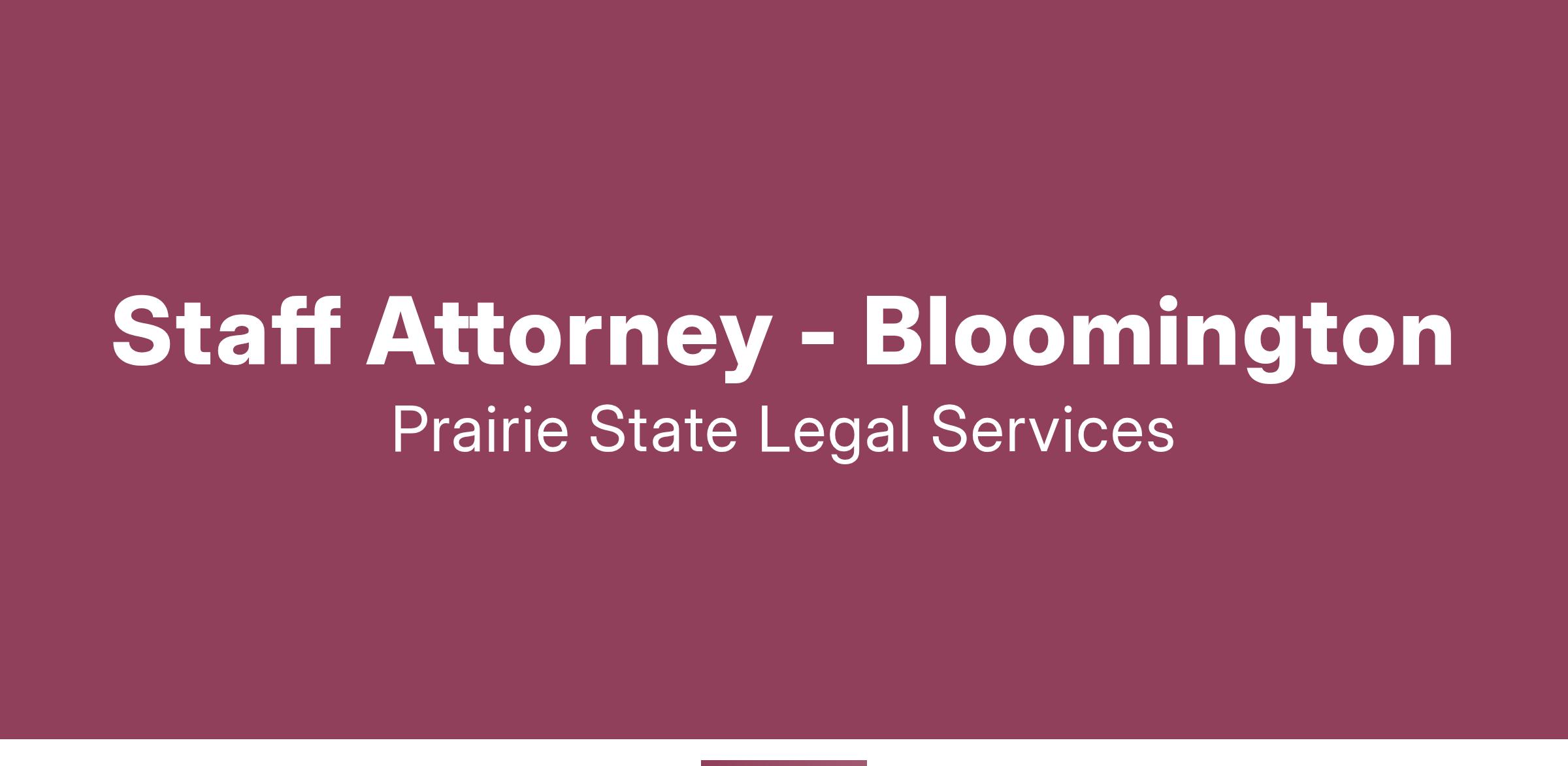 Prairie State Legal Services, Inc. is seeking a Staff Attorney to join our team in the Bloomington office. Staff attorneys at PSLS provide a wide range of legal services to some of the most vulnerable members of our communities, including low-income individuals, older adults, veterans, and people with disabilities. We focus services on legal problems that impact the ability of our clients to meet their basic human needs, including physical safety, access to healthcare, adequate housing, and financial stability. Prairie State is the only legal aid organization in the majority of our area, and we pride ourselves on providing high-quality legal services to our clients while fostering a work environment that is motivating, collaborative, and rewarding, with plenty of opportunities for professional growth.