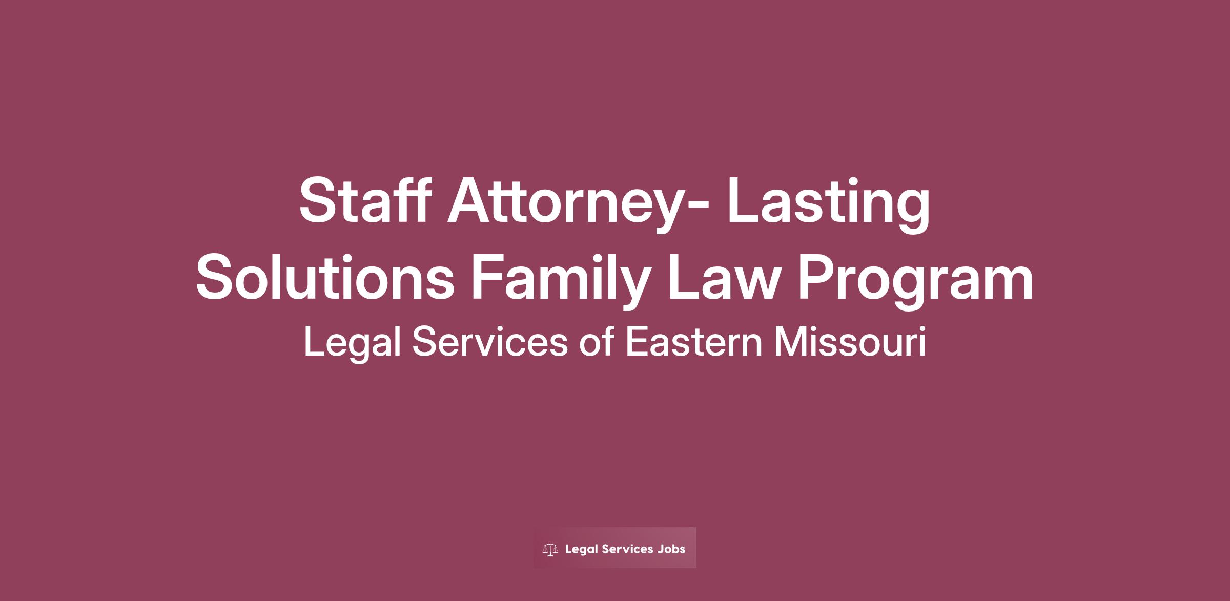 Legal Services of Eastern Missouri (Legal Services), a nonprofit law firm providing free, quality civil legal services, seeks a full-time Staff Attorney for its Lasting Solutions Family Law Program. Legal Services advances justice through legal representation, education, and supportive services. We partner with the community to improve lives, promote fairness, and create opportunities for those in need.