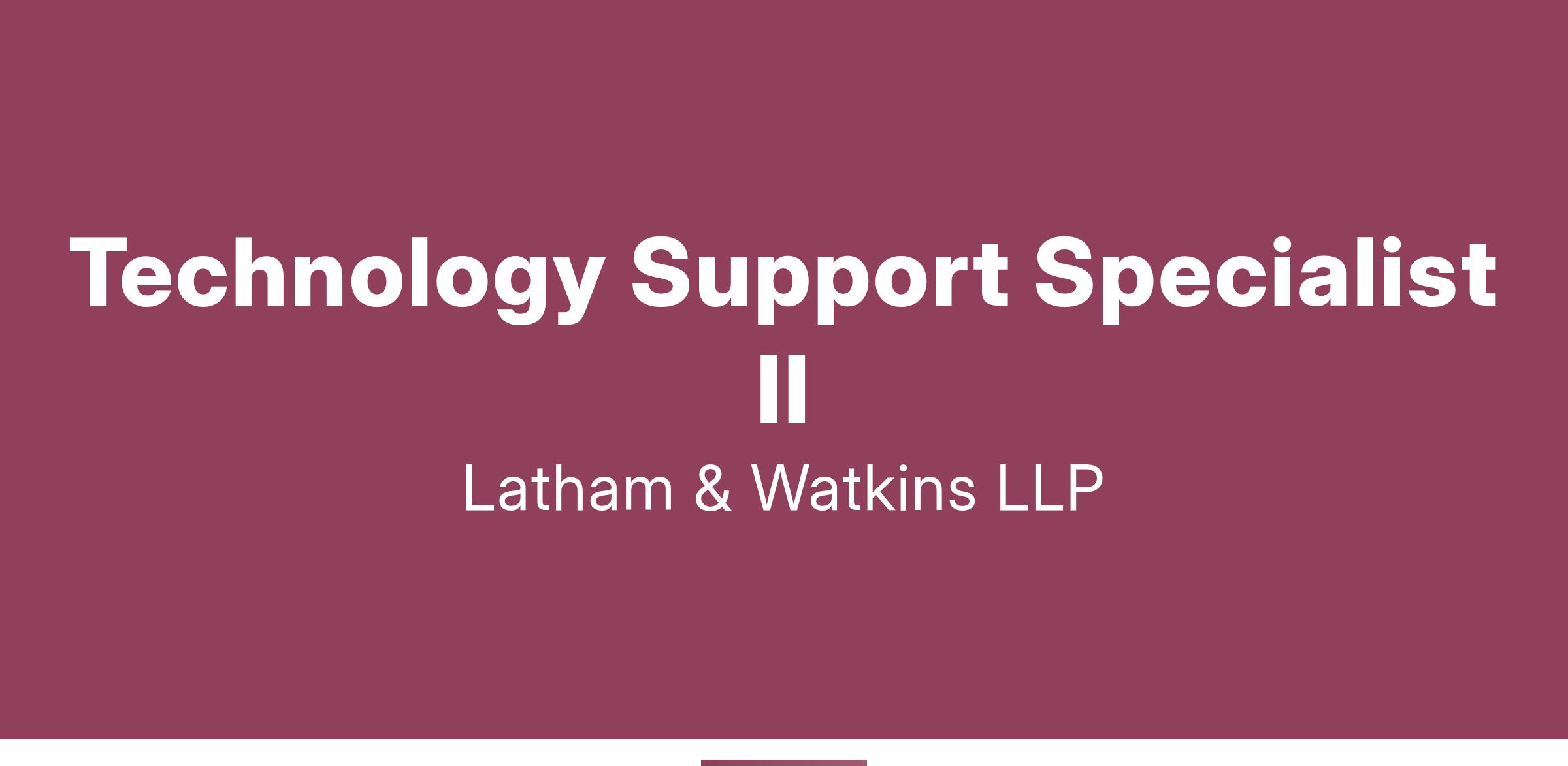 The Technology Support Specialist II is an integral part of Latham’s Technology & Information Services team and will be responsible for providing support to the office by resolving desktop, notebook, and remote computing issues, while performing regular maintenance on desktop and notebook computers, printers, monitors, and peripheral hardware. This role will be located in our Houston office. Please note that this role requires an in-office presence.