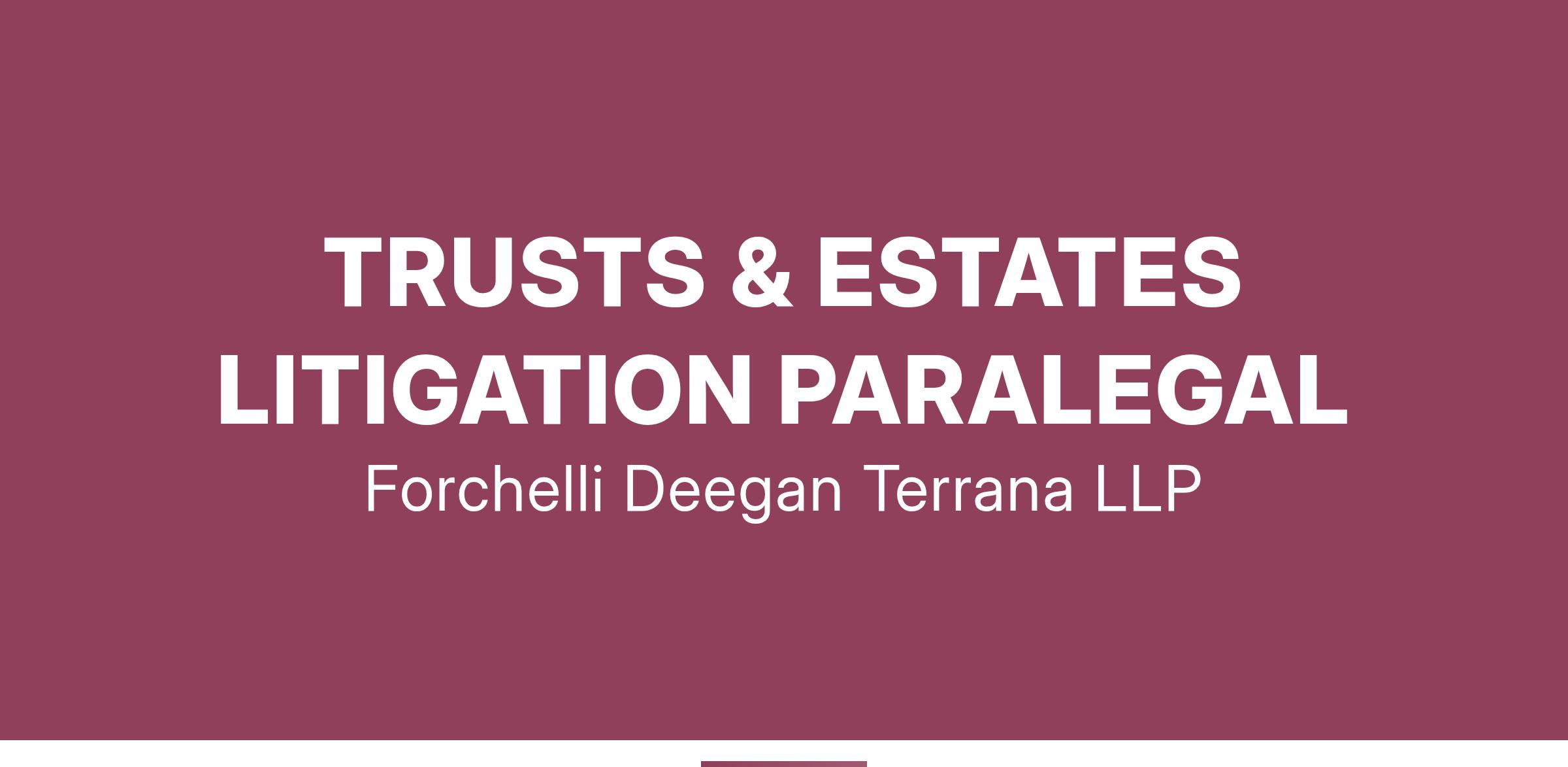 Prestigious, full service, Long Island law firm seeks F/T Paralegal for Tax, Trusts and Estates Department with at least 2 years of experience in trusts and estates litigation. The candidate must have a Bachelor's Degree or a Paralegal Certificate and be proficient in Word, Excel and Outlook. The position also requires proficiency with New York State's e-filing system (NYSCEF), Surrogate's Court procedure, and local Surrogate's Courts rules. Responsibilities will include drafting pleadings, documents and correspondence, assisting with motion practice and exhibits for deposition preparation, organizing, indexing and summarizing records, among other things. The candidate should have demonstrated ties to Long Island. The firm's offices are centrally located on Long Island in one of the region's premier buildings. The firm has great infrastructure, an excellent support staff, and a unique collegial culture with a strong track record of integrating lateral attorneys. (No phone calls accepted)